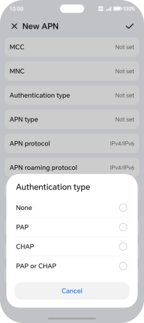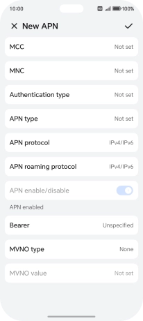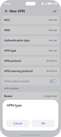 9. Enter APN type