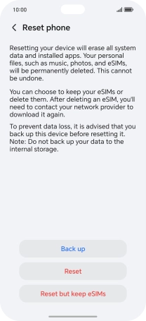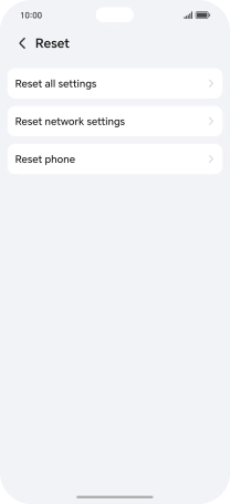 Press Reset. Wait a moment while the factory default settings are restored. Follow the instructions on the screen to set up your phone and prepare it for use.