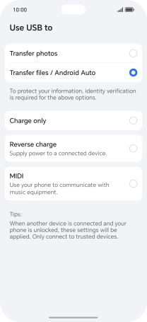 Press Transfer files / Android Auto.
