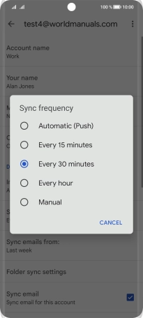 8. Select period for email message synchronisation