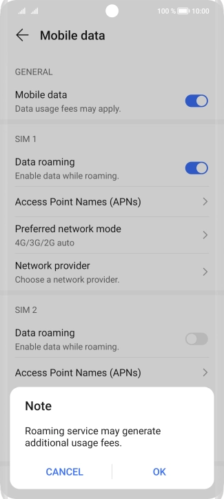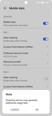 Press the indicator next to "Data roaming" below the required SIM to turn the function on or off.