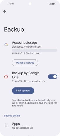 Press the indicator next to "Backup by Google One" to turn on the function.