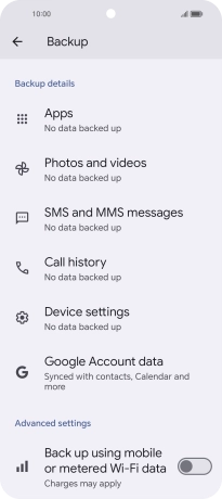 Press the indicator next to "Back up using mobile or metered Wi-Fi data" to turn the function on or off.