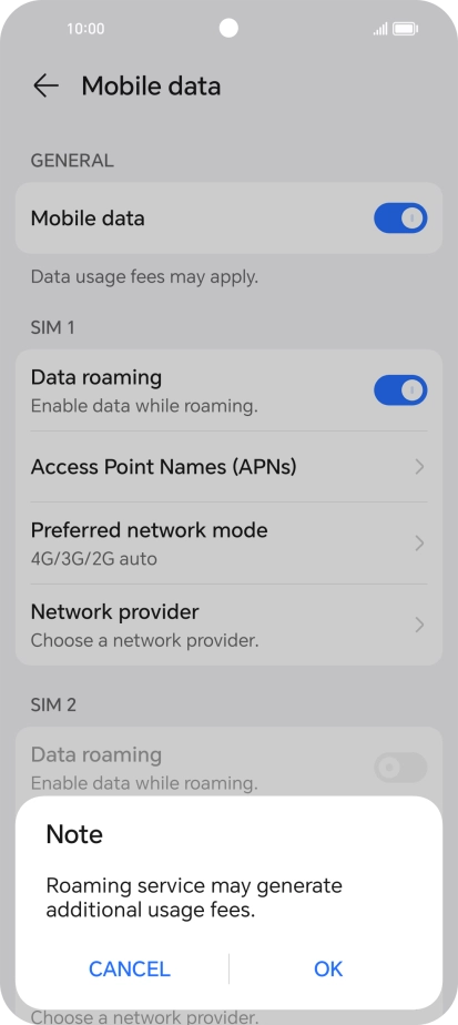 2 Turn data roaming on or off