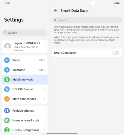 Press the indicator next to "Smart Data Saver" to turn the function on or off.