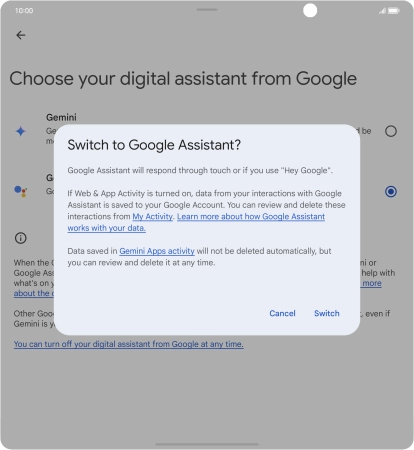Press Google Assistant features in Gemini and follow the instructions on the screen to turn use of Google Assistant functions on or off.