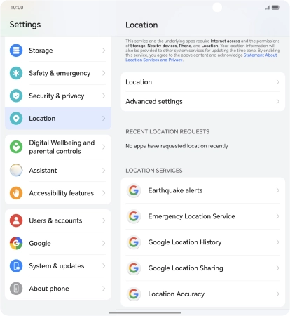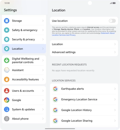 Press the indicator next to "Use location" to turn the function on or off.