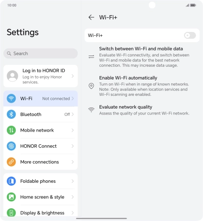 Press the indicator next to "Wi-Fi+" to turn the function on or off.