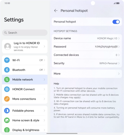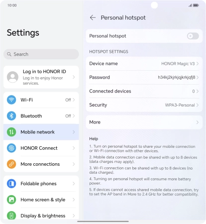 3. Turn on Wi-Fi hotspot