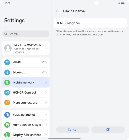 Press Device name and key in the required name for the Wi-Fi hotspot.
