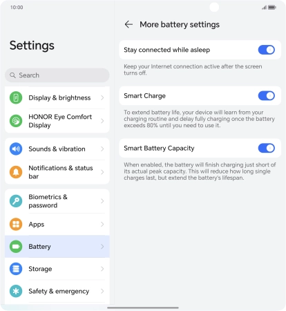 Press the indicator next to "Smart Charge" to turn the function on or off.