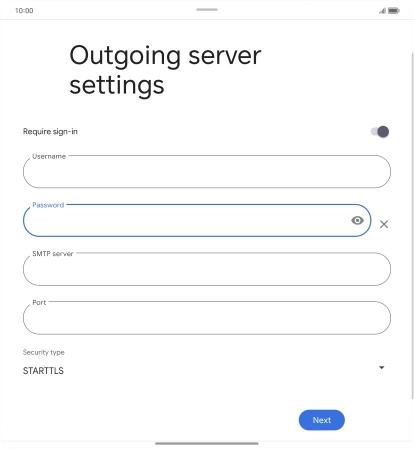 Press the field below "Password" and key in the password for your email provider's outgoing server.