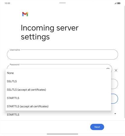 Press the field below "Server" and key in the name of your email provider's incoming server.