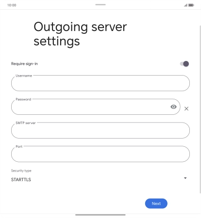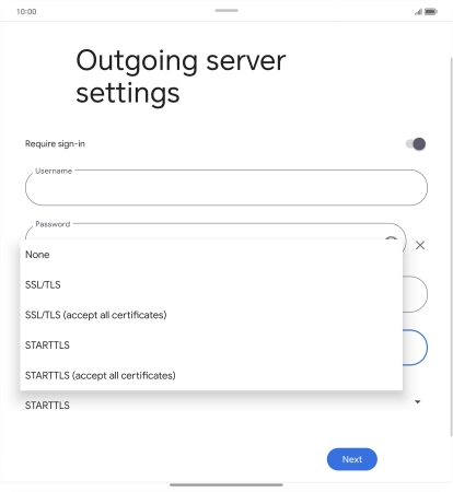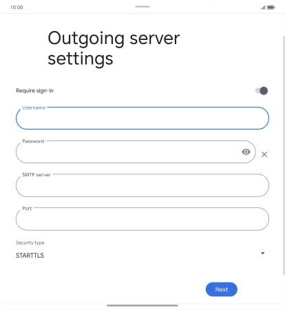 Press the field below "Username" and key in the username for your email the email provider's outgoing server.