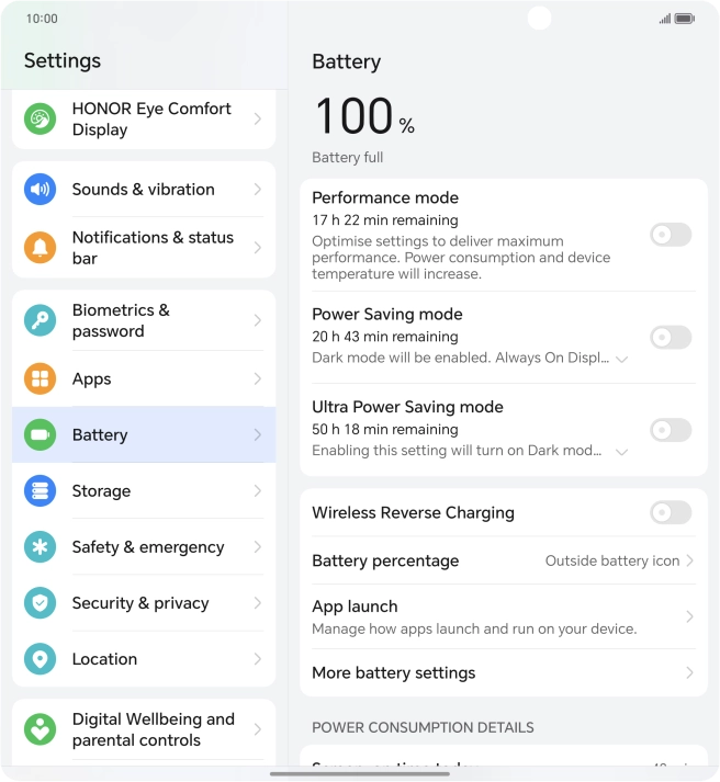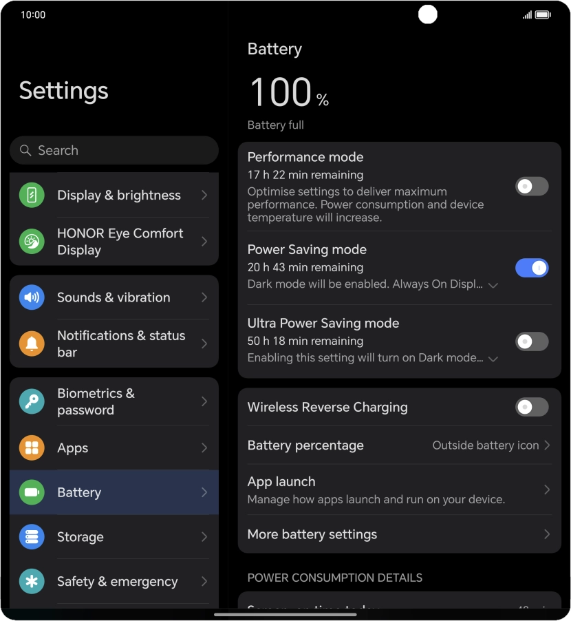 Press the indicator next to "Power Saving mode" to turn on the function.