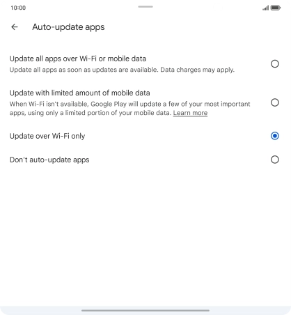 If you turn on limited update of apps via mobile network, your most used apps are automatically updated via the mobile network when no Wi-Fi networks are within range.