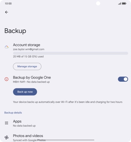 Press the indicator next to "Backup by Google One" to turn on the function.
