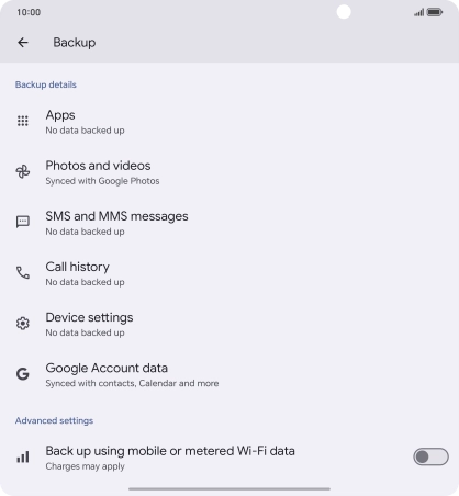 Press the indicator next to "Back up using mobile or metered Wi-Fi data" to turn the function on or off.