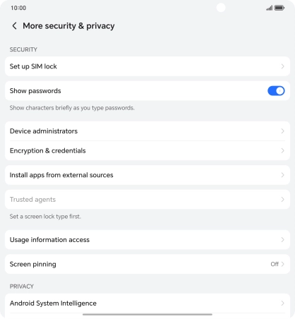 Press Security & privacy.