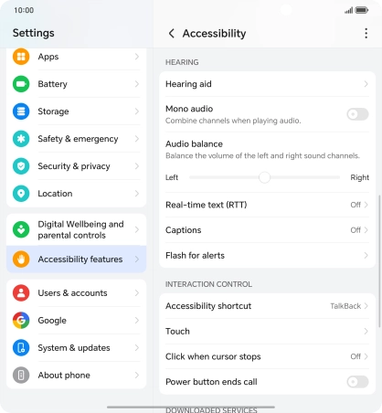 You can select various accessibility settings for screen, sound and interaction making it easier to use the phone functions.
