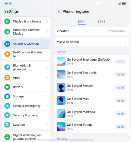 2. Select ring tone