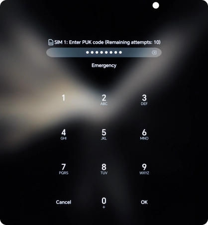 Key in the PUK and press OK.