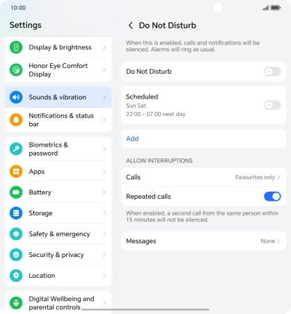 Follow the instructions on the screen to select settings for automatic activation of Do Not Disturb.