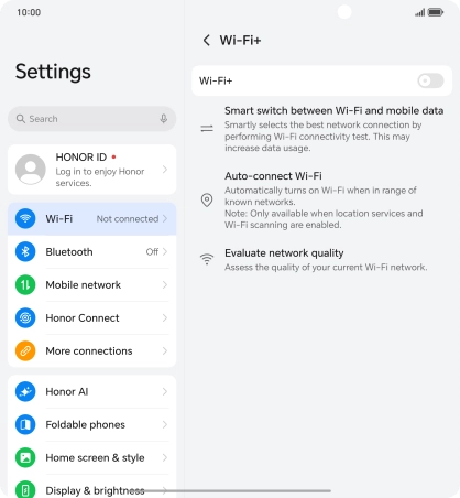 Press the indicator next to "Wi-Fi+" to turn the function on or off.