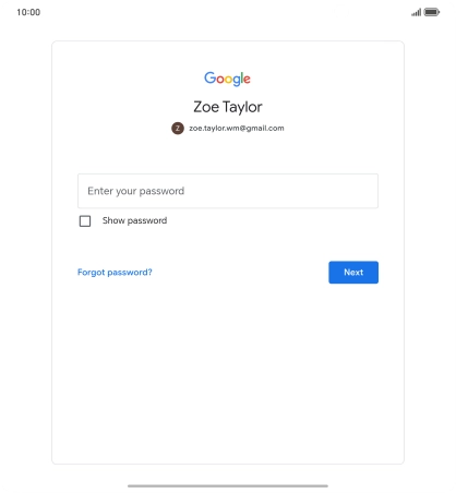 If you don't have a Google account, press Create account and follow the instructions on the screen to create an account.