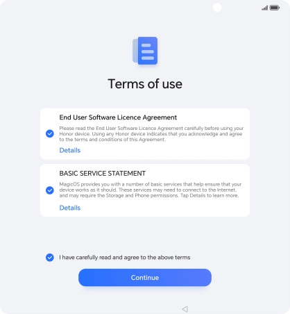 Press the field to accept the licence agreement.