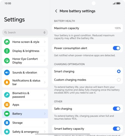 2. Turn optimised battery charging on or off