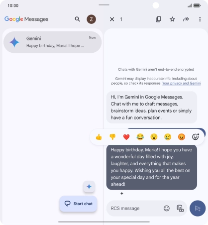 Press and hold the text suggestion from Gemini. Follow the instructions on the screen to use the text suggestion.