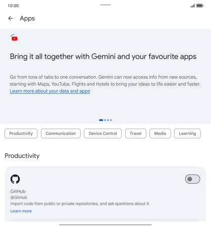 If you turn on extensions, Gemini can interact with other apps and services to give you answers to your questions and respond to your commands for the selected app or service.