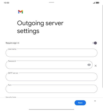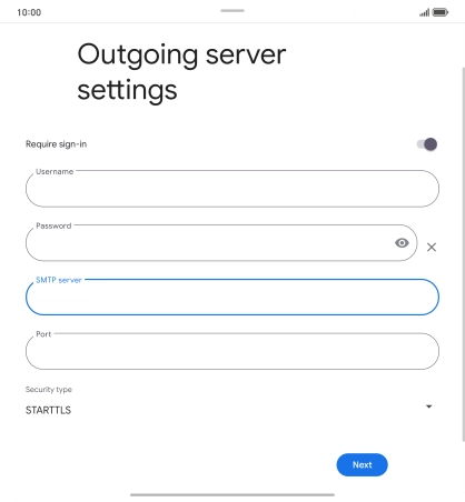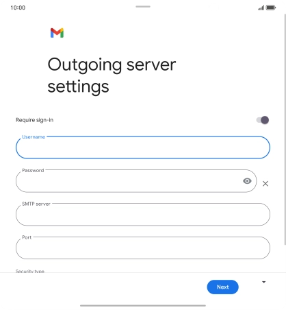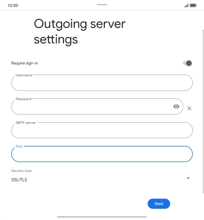11. Enter outgoing server