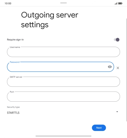 Press the field below "Password" and key in the password for your email provider's outgoing server.