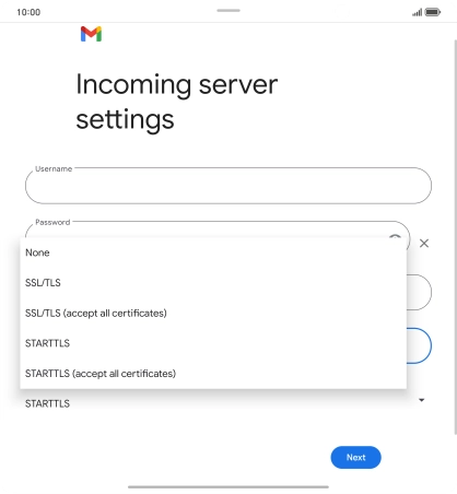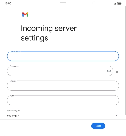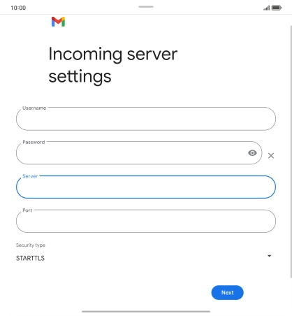 Press the field below "Server" and key in the name of your email provider's incoming server.