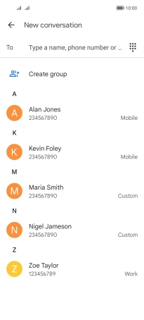 Press the field next to "To" and key in the first letters of the recipient's name.