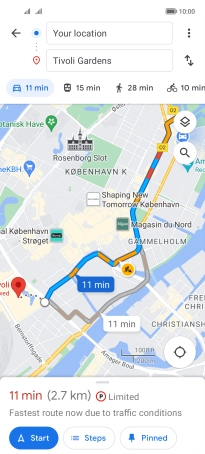 The travel information at the bottom of the screen shows your estimated time of arrival and distance to destination.