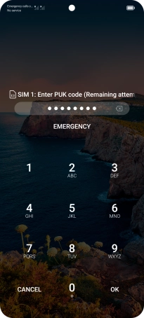 Key in the PUK and press OK.