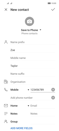 Follow the instructions on the screen to add more information such as an email address and a personal ring tone.
