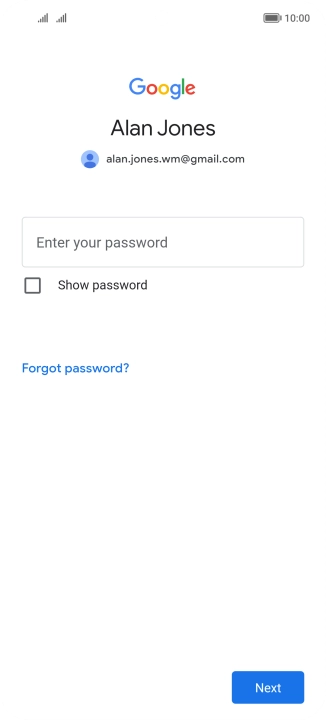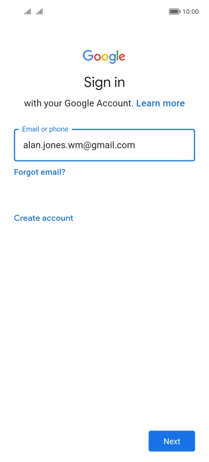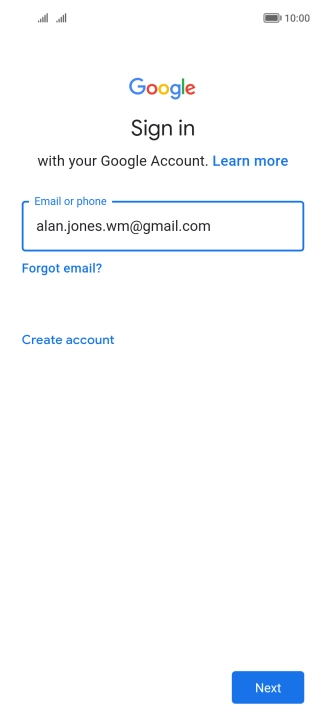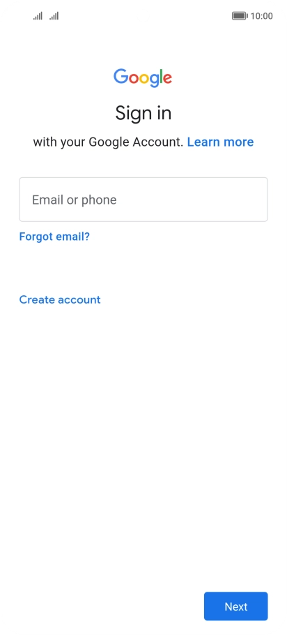 If you don't have a Google account, press Create account and follow the instructions on the screen to create an account.