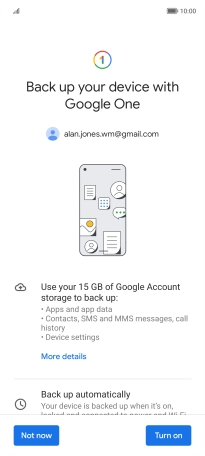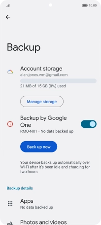 The phone memory will be backed up automatically when your phone is charging, the screen lock is turned on and a Wi-Fi connection is established.