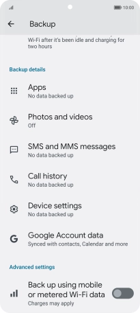 Press the indicator next to "Back up using mobile or metered Wi-Fi data" to turn the function on or off.