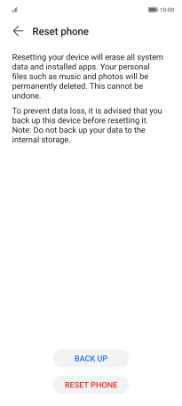 Press RESET PHONE. Wait a moment while the factory default settings are restored. Follow the instructions on the screen to set up your phone and prepare it for use.