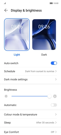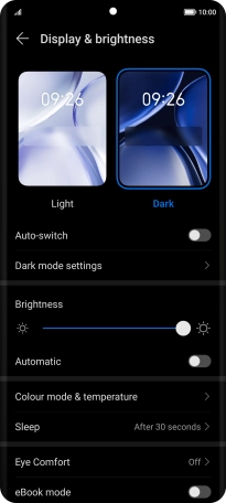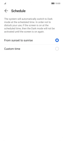 If you select Custom time, follow the instructions on the screen to select the required period of time for dark mode.