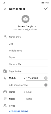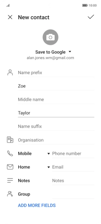 Follow the instructions on the screen to add more information such as an email address and a personal ring tone.