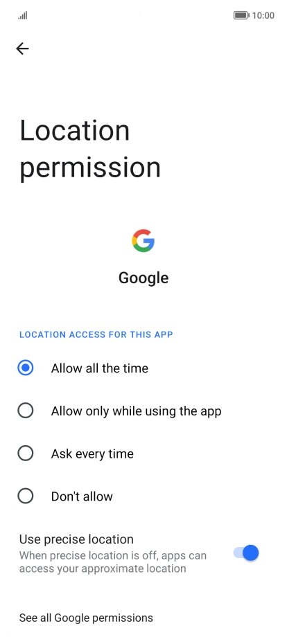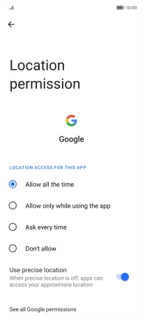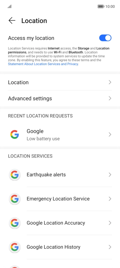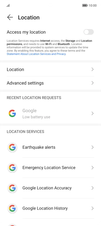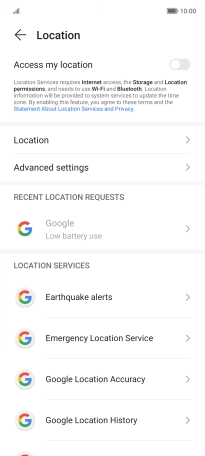 Press the indicator next to "Access my location" to turn the function on or off.