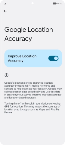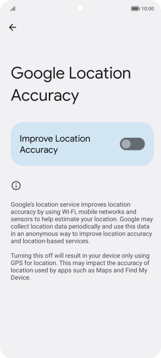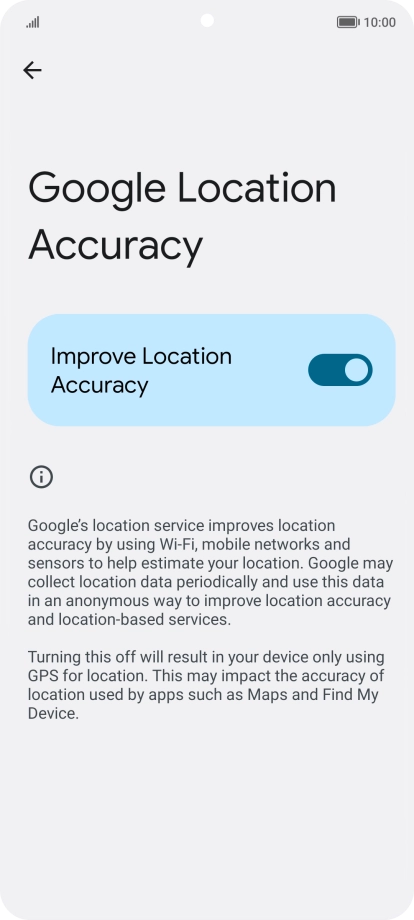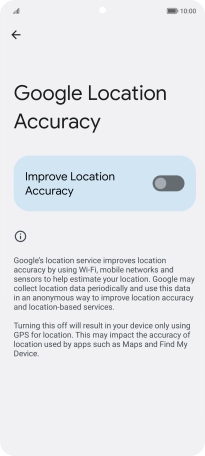 If you press the indicator next to "Improve Location Accuracy" to turn off the function, your phone can find your exact position using the GPS satellites but it may take longer as there is no access to supplementary information from the mobile network or nearby Wi-Fi networks.