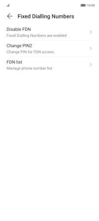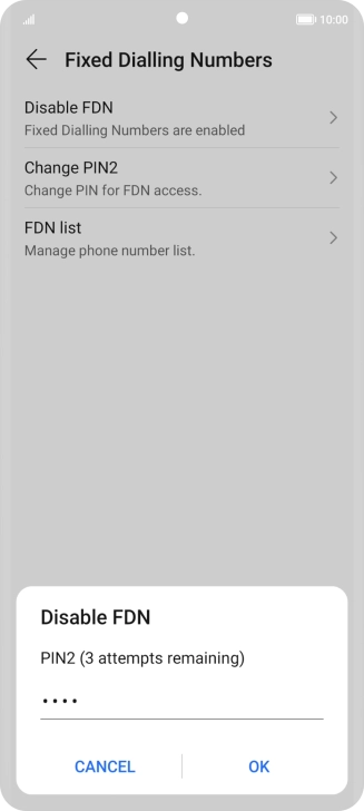 Press Disable FDN to turn off fixed dialling.