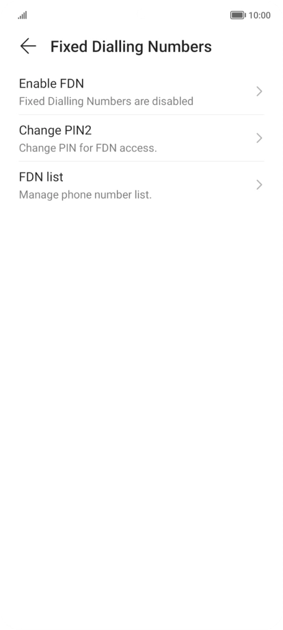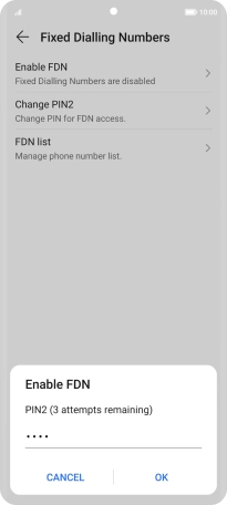 Press Enable FDN to turn on fixed dialling.